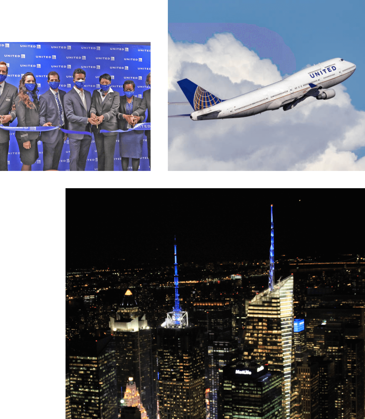United came to Spireworks to announce their return to John F. Kennedy Airport. They wanted to engage Spireworks members and United Employees for this important event. United and Spireworks gave users an elevated and integrated Spireworks experience, allowing guests to take over all of Spireworks' New York City spires with specialized United Airlines themes to celebrate the event.